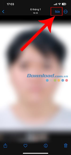 Đầu tiên, mở ảnh chân dung 4x6 sẽ dùng làm ảnh hộ chiếu và nhấn nút Sửa ở góc trên cùng bên phải.
