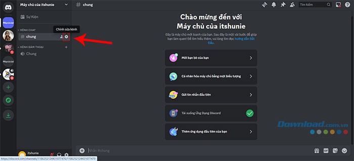 Bước 2: Chọn vào biểu tượng bánh răng Chỉnh sửa kênh, nằm ngay cạnh tên của kênh.