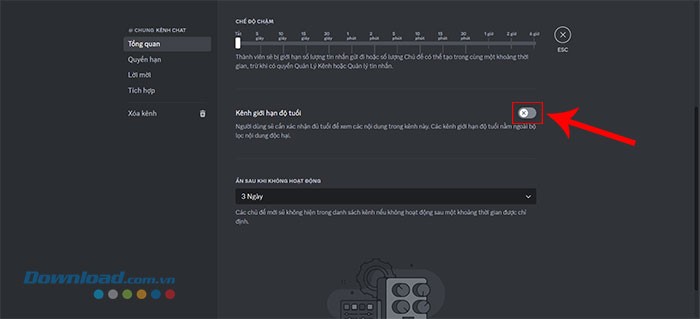 Bước 3: Bật tùy chọn Kênh giới hạn độ tuổi.