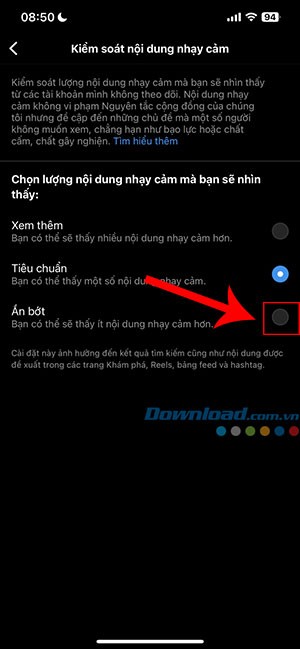 Trong trường hợp người dùng nhận thấy lượng nội dung nhạy cảm hiển thị ở mức độ Tiêu chuẩn vẫn còn quá nhiều, việc điều chỉnh để hạn chế sự xuất hiện của những nội dung này trên Instagram là hoàn toàn khả thi.