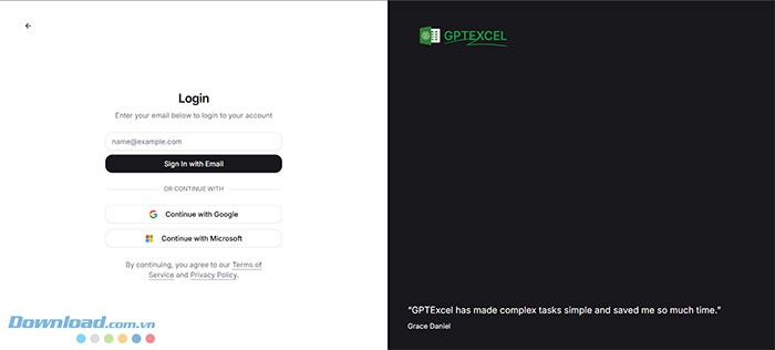 Tiến hành mở trình duyệt web quen thuộc như Chrome, Firefox hoặc Safari. Gõ chính xác địa chỉ trang GPTExcel vào thanh địa chỉ và thực hiện đăng nhập bằng tài khoản Google hoặc Microsoft hiện có.