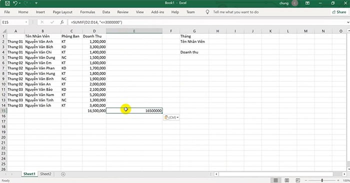 Sau khi dán công thức, nhấn phím Enter để thực thi. Kết quả sẽ được hiển thị ngay trong ô, cung cấp giá trị hoặc kết quả dựa trên mô tả công thức mà bạn đã nhập.