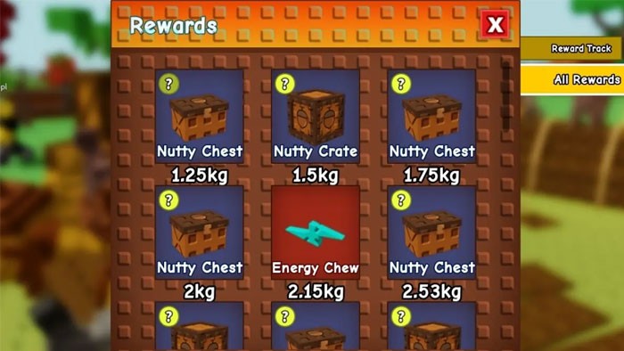 Nutty Chest sẽ xuất hiện như một phần thưởng ở một số mốc nhất định, cùng với các vật phẩm khác như thùng chứa, công cụ hỗ trợ và các phần thưởng giá trị khác.