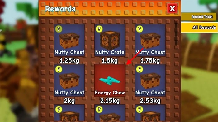 Energy Chew là một vật phẩm đặc biệt, chỉ có thể nhận thông qua bảng thưởng của sự kiện Chubby Chipmunk. Do đó, phương thức duy nhất để có được nó là chờ đợi thú cưng Chubby Chipmunk của bạn phát triển. Nếu bạn chưa sở hữu thú cưng này, hãy tận dụng banner Free Chipmunk, thường xuất hiện bên cạnh NPC Nuts tại trung tâm khu vực sự kiện để nhận miễn phí.