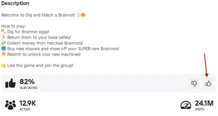- Chọn nút thumbs-up, thường nằm trong khu vực thống kê của trò chơi.