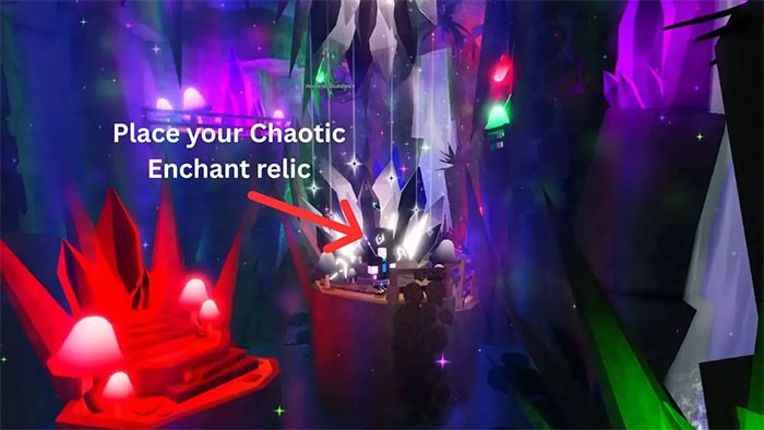 Khi đến Crystal Cove, bạn sẽ thấy một bệ đá phát sáng với màu đen huyền bí. Hãy đặt Chaotic Enchant Relic lên trên bệ đá này. Sau đó, di chuyển ra phía sau bệ và rẽ trái, bạn sẽ thấy một hố đen vừa mới mở ra. Cuối cùng, nhảy xuống hố đen này để đến được Underground Music Venue.