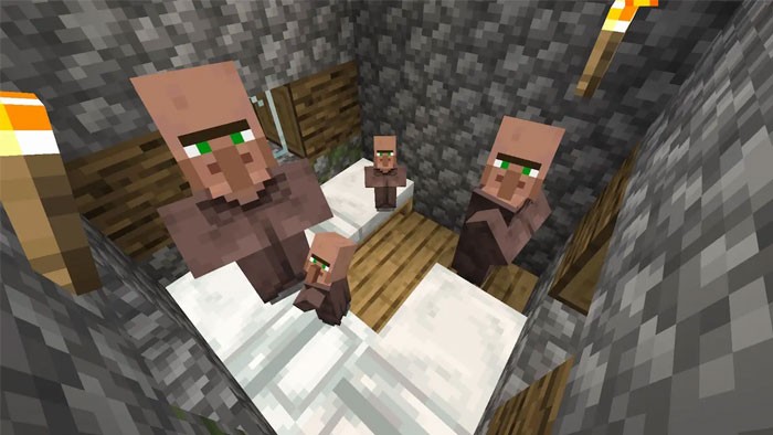 Ví dụ, nếu bạn có hai dân làng, bạn sẽ cần chuẩn bị ba giường. Ngoài ra, cần đảm bảo không gian trống ít nhất hai khối phía trên mỗi giường để dân làng con có thể phát triển.