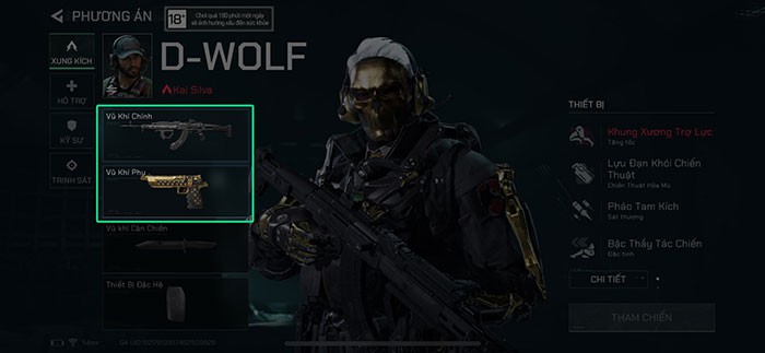 Bước 2: Tiến hành chọn class nhân vật và vũ khí mà bạn muốn sử dụng.