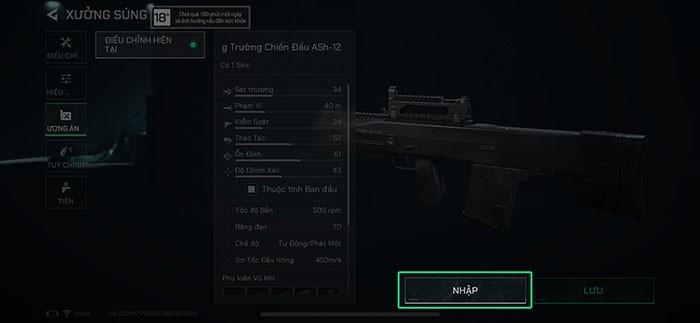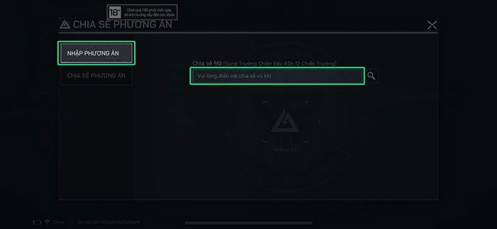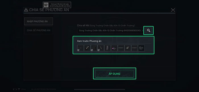 Bước 6: Tại cửa sổ hiện ra, chọn Nhập phương án và dán mã thiết lập súng vào ô văn bản để nhập cấu hình từ một người chơi khác.
