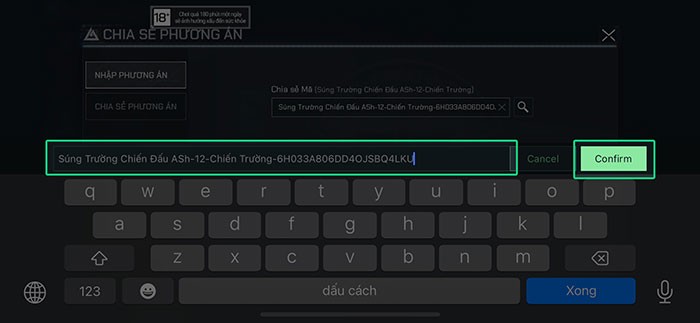 Bước 7: Sau khi dán mã, nhấn Confirm để xác nhận.