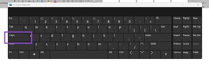 - Nhấn vào phím Caps Lock trên bàn phím ảo để kiểm tra xem trạng thái bật/tắt của nó có chính xác hay không.