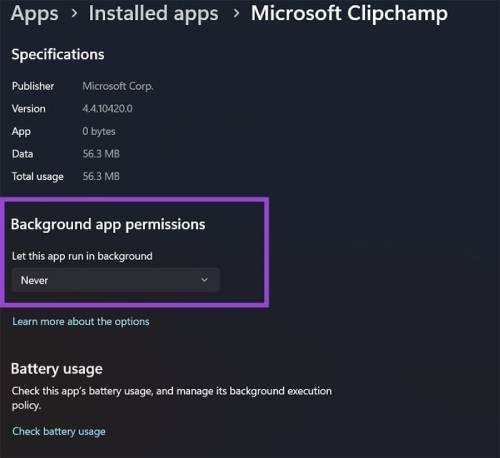Bên cạnh đó, việc điều chỉnh cài đặt chạy nền của ứng dụng cũng có thể giúp ngăn chặn tình trạng tích tụ dữ liệu không cần thiết, góp phần cải thiện hiệu suất của ClipChamp.