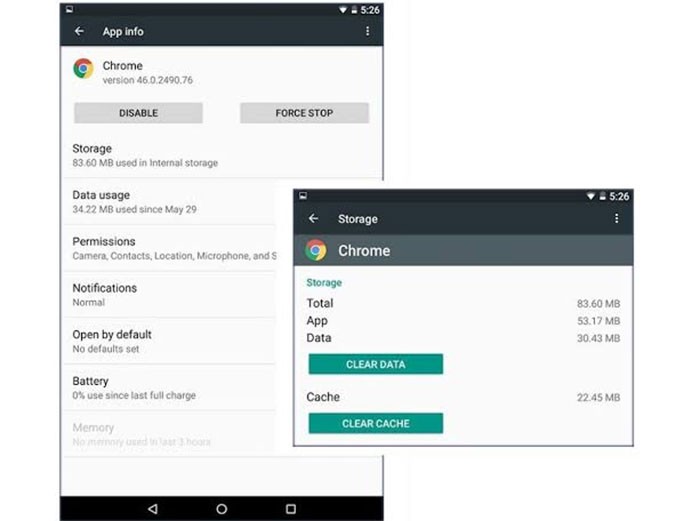 - Xóa bộ nhớ cache và dữ liệu của ứng dụng.