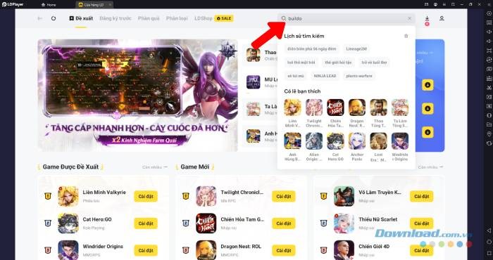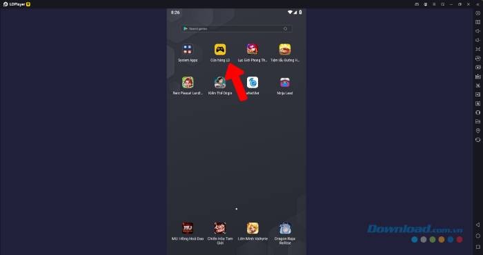 Trong trường hợp trang cài đặt trò chơi không tự động mở, hoặc bạn đã cài đặt LDPlayer 9 trước đó, hãy nhấn vào biểu tượng tìm kiếm ở góc phía trên bên phải màn hình.
