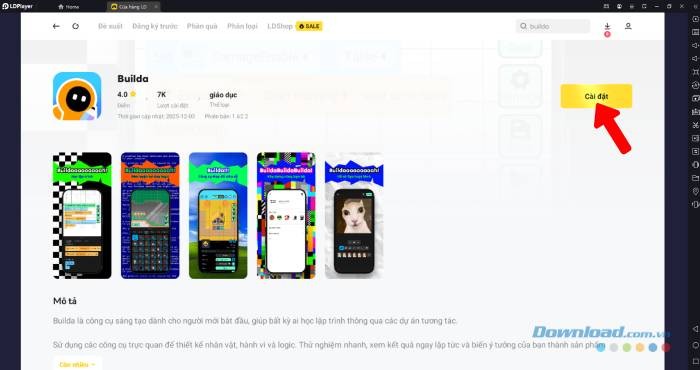 Bước 4: Nhấn Cài đặt trong giao diện tải ứng dụng của Cửa hàng LD để khởi động quá trình tải về.
