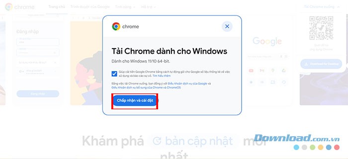 Bước 3: Một hộp thoại thông báo sẽ xuất hiện. Hãy chọn Chấp nhận và cài đặt để xác nhận và tiếp tục.