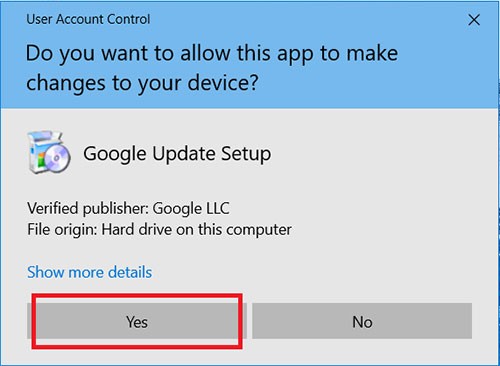 - Sau khi quá trình tải xuống hoàn tất, mở tệp cài đặt và nhấn Yes để cấp quyền cài đặt.