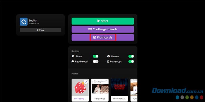 Bước 5: Khi mở đường link, chọn Flashcards để bắt đầu học tập.