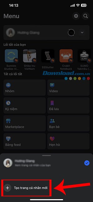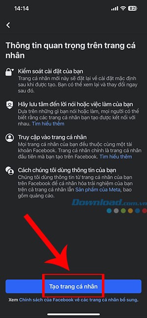 Bước 5: Cuối cùng, chạm vào Tạo trang cá nhân để hoàn tất. Một hồ sơ mới sẽ được tạo và liên kết trực tiếp với tài khoản Facebook chính của bạn.