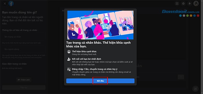 Bước 3: Bấm vào nút Bắt đầu để khởi tạo một trang cá nhân khác với một tên gọi riêng.
