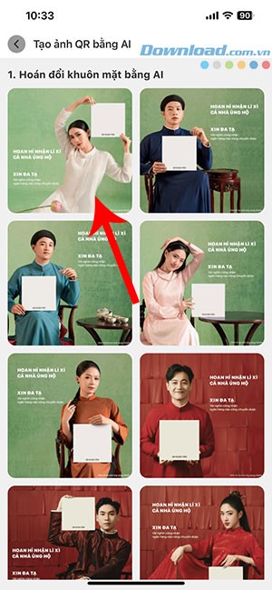 Bước 2: Bạn sẽ được yêu cầu chọn một mẫu hình ảnh có sẵn để thay thế khuôn mặt của mình bằng công nghệ AI.