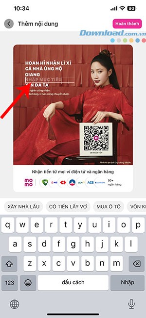 Bước 5: Cuối cùng, nhấn vào nút Hoàn thành để lưu ảnh QR về thiết bị hoặc chia sẻ ngay lên trang cá nhân hoặc gửi cho bạn bè. Mã QR này cho phép bạn nhận lì xì từ mọi ví điện tử và ứng dụng ngân hàng trong dịp Tết Giáp Thìn 2024.