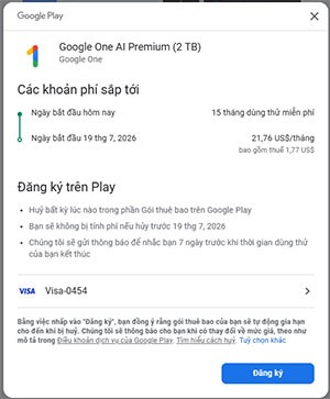 - Sau khi hết thời hạn 15 tháng, gói dịch vụ của bạn sẽ tự động chuyển sang gói trả phí với mức giá hiện hành của Google AI Pro. Bạn có quyền hủy gia hạn bất kỳ lúc nào trước thời điểm chuyển đổi.