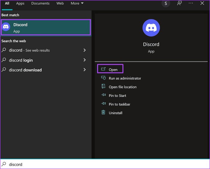 Bước 1: Trên máy tính, hãy mở menu Start và nhập Discord vào ô tìm kiếm.