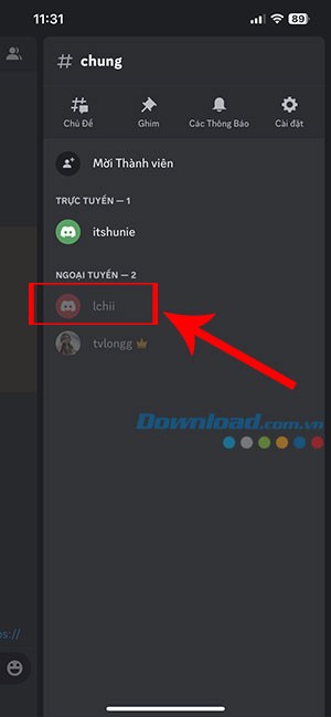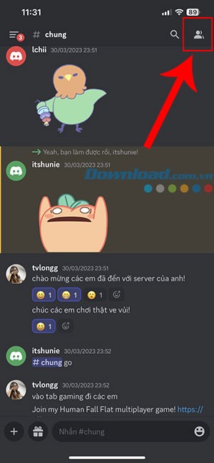 Bước 2: Khi kênh chat đã được mở, hãy nhấn vào biểu tượng danh sách thành viên, thường được đặt ở góc trên cùng bên phải của giao diện.