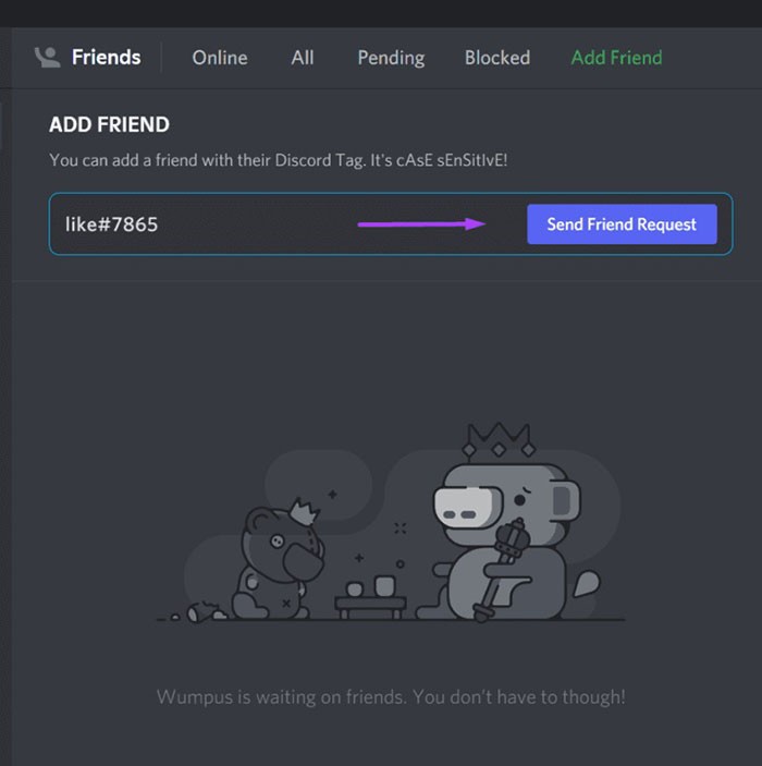 Bước 5: Điền chính xác tag người dùng Discord của người bạn muốn kết nối.