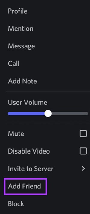 Bước 6: Trong menu hiện ra, chọn Add Friend. Discord sẽ gửi một yêu cầu kết bạn đến người đó.