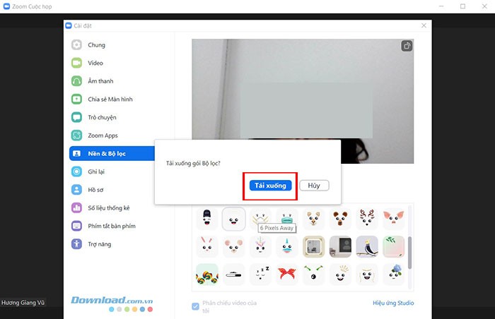 Nếu đây là lần đầu tiên bạn sử dụng Zoom, việc nhấp vào nút Hiệu ứng Studio sẽ mở ra một cửa sổ thông báo và yêu cầu tải xuống gói hiệu ứng cần thiết. Chọn Tải xuống để bắt đầu quá trình tải.