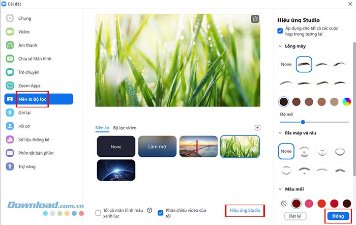 Cách dùng Hiệu ứng Studio trong Zoom
