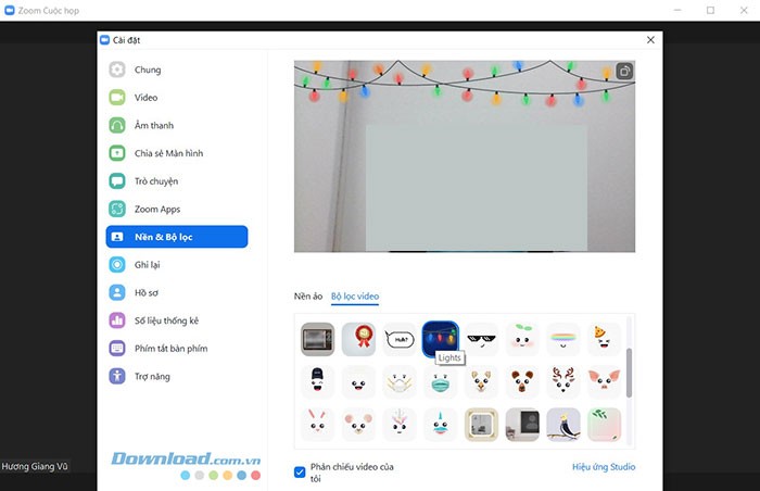 Thêm filter trong ứng dụng Zoom trên máy tính