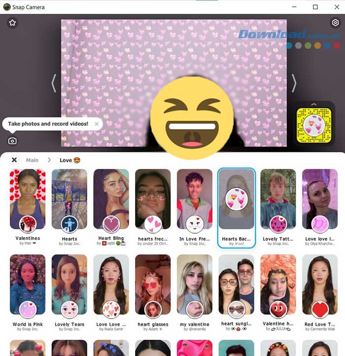 Bước 3: Duyệt qua và lựa chọn một filter ưng ý từ giao diện của Snap Camera.