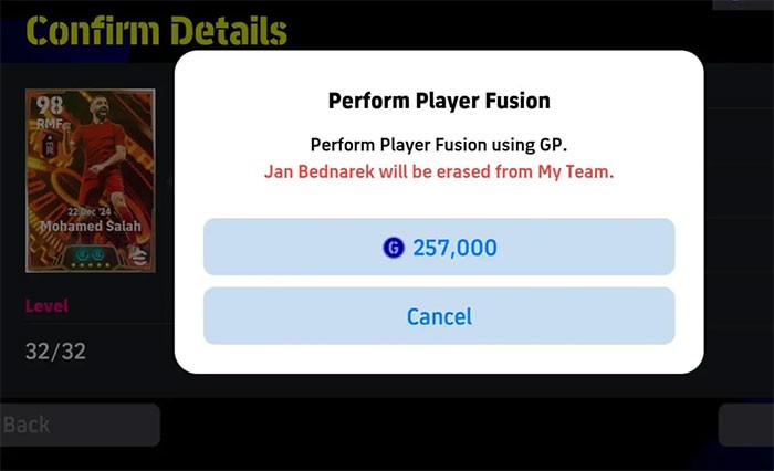 Kế thừa từ tính năng Legacy Transfer được giới thiệu từ bản cập nhật Season 4 của eFootball 2023, Player Fusion (hợp nhất cầu thủ) là một điểm mới đáng chú ý trong eFootball 2025.
