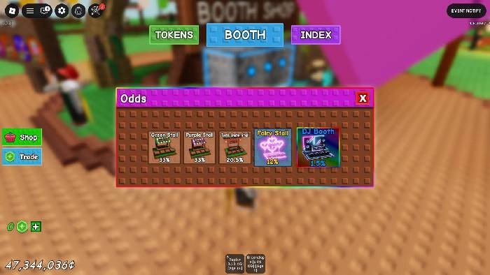 Mỗi lần quay, bạn sẽ nhận được ngẫu nhiên một trong số 10 skin gian hàng khác nhau và có thể áp dụng ngay cho gian hàng của mình. Hãy đến Trade Booth của bạn và chọn tương tác để mở giao diện tùy chỉnh. Chọn skin yêu thích và skin mới sẽ được hiển thị cho toàn bộ người chơi trong server.