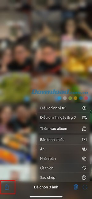 Bước 2: Chọn những hình ảnh bạn muốn đưa vào nhật ký. Sau đó, chạm vào biểu tượng chia sẻ.