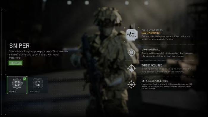 Chẳng hạn, khi điều khiển lớp nhân vật Recon, game thủ có thể ưu tiên phát triển nhánh kỹ năng Sniper Training.