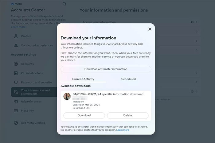Bước 1: Tải xuống dữ liệu Instagram của bạn, và đảm bảo bạn chọn định dạng HTML.