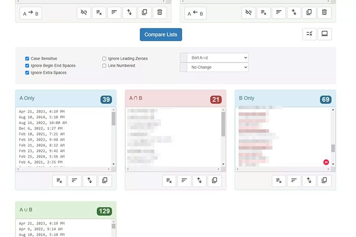 Bước 5: Thay đổi tùy chọn sắp xếp thành Sort A -> Z, sau đó chọn lại Compare Lists. Cuộn xuống danh sách B Only, bỏ qua các thông tin về ngày tháng, cho đến khi bạn thấy tên người dùng. Những người dùng này là những người bạn đang theo dõi nhưng họ không theo dõi lại bạn.