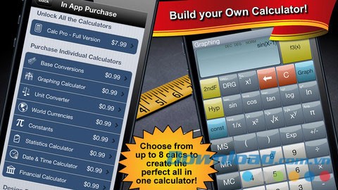 Calc Pro Free cho phép người dùng cá nhân hóa trải nghiệm bằng cách mua thêm các máy tính điện tử và các tính năng bổ sung cần thiết.