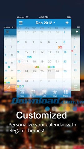 Calendar Pro cung cấp nhiều tùy biến hấp dẫn, đáp ứng nhu cầu cá nhân hóa của mỗi người dùng.