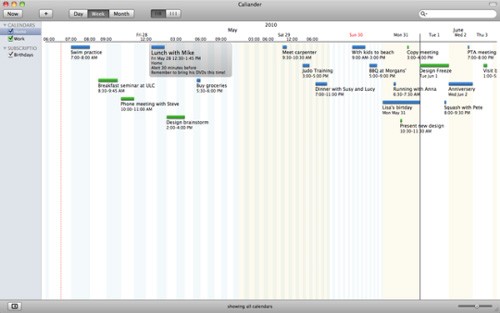- Không cần đăng nhập: Caliander tận dụng Mac OS X Calendar Store – cơ sở dữ liệu mà iCal sử dụng – giúp bạn tránh được các vấn đề liên quan đến định dạng. Mọi thay đổi trong Caliander đều được đồng bộ với iCal và ngược lại.