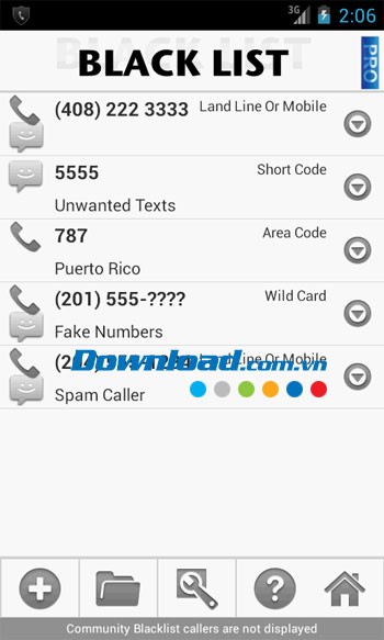 Ứng dụng cung cấp danh sách đen (blacklist) cá nhân, cho phép người dùng chặn mọi số điện thoại cụ thể hoặc thậm chí chặn theo mã vùng, hỗ trợ sử dụng ký tự đại diện (wild card) và nhiều tùy chọn khác.