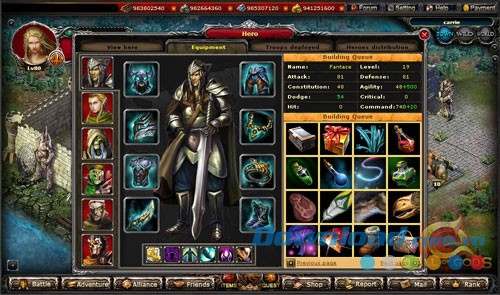 Game sở hữu nhiều tính năng quen thuộc của dòng game chiến thuật như đấu trường, chế tạo trang bị, khảm ngọc, và PvP.