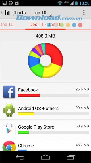 - Theo dõi dữ liệu: Quản lý hiệu quả dung lượng dữ liệu di động, wifi, 3G và 4G.