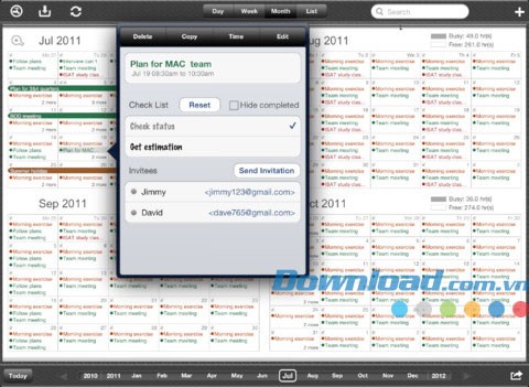 Sự kiện sẽ được đồng bộ trực tiếp với lịch Google, đồng thời tương thích với lịch iPad. Nhờ đó, người dùng có thể đồng bộ dữ liệu với Outlook, Mobile Me, và lịch Google một cách dễ dàng, cũng ở cả hai chế độ tự động và thủ công.