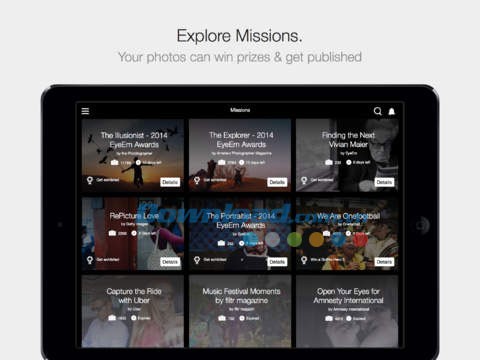 Thể hiện khả năng sáng tạo của bạn với cộng đồng toàn cầu. Gửi những tác phẩm xuất sắc nhất tham gia các cuộc thi Missions để có cơ hội giành được những giải thưởng giá trị. Ảnh của bạn có thể được yêu thích và trưng bày trên phạm vi quốc tế.