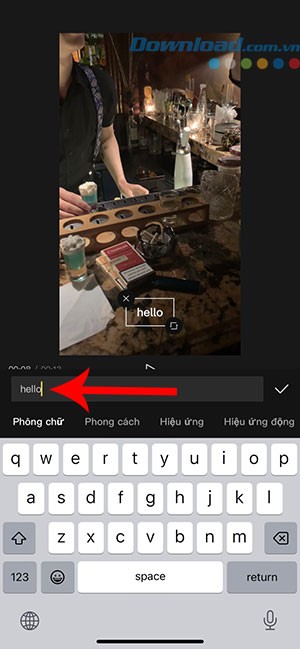 Bước 4: Để hoàn tất, nhấn vào biểu tượng dấu tích để xác nhận và áp dụng hiệu ứng động cho văn bản. Cuối cùng, nhấn vào nút mũi tên để lưu video đã chỉnh sửa vào thư viện ảnh của bạn.